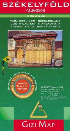 Detailed map of south-eastern Transylvania (in the center of Romania) published by Gizi Map.