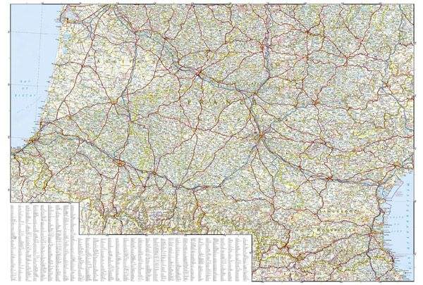 The map includes the locations of cities and towns with a user-friendly index, plus a clearly marked road network complete with ...