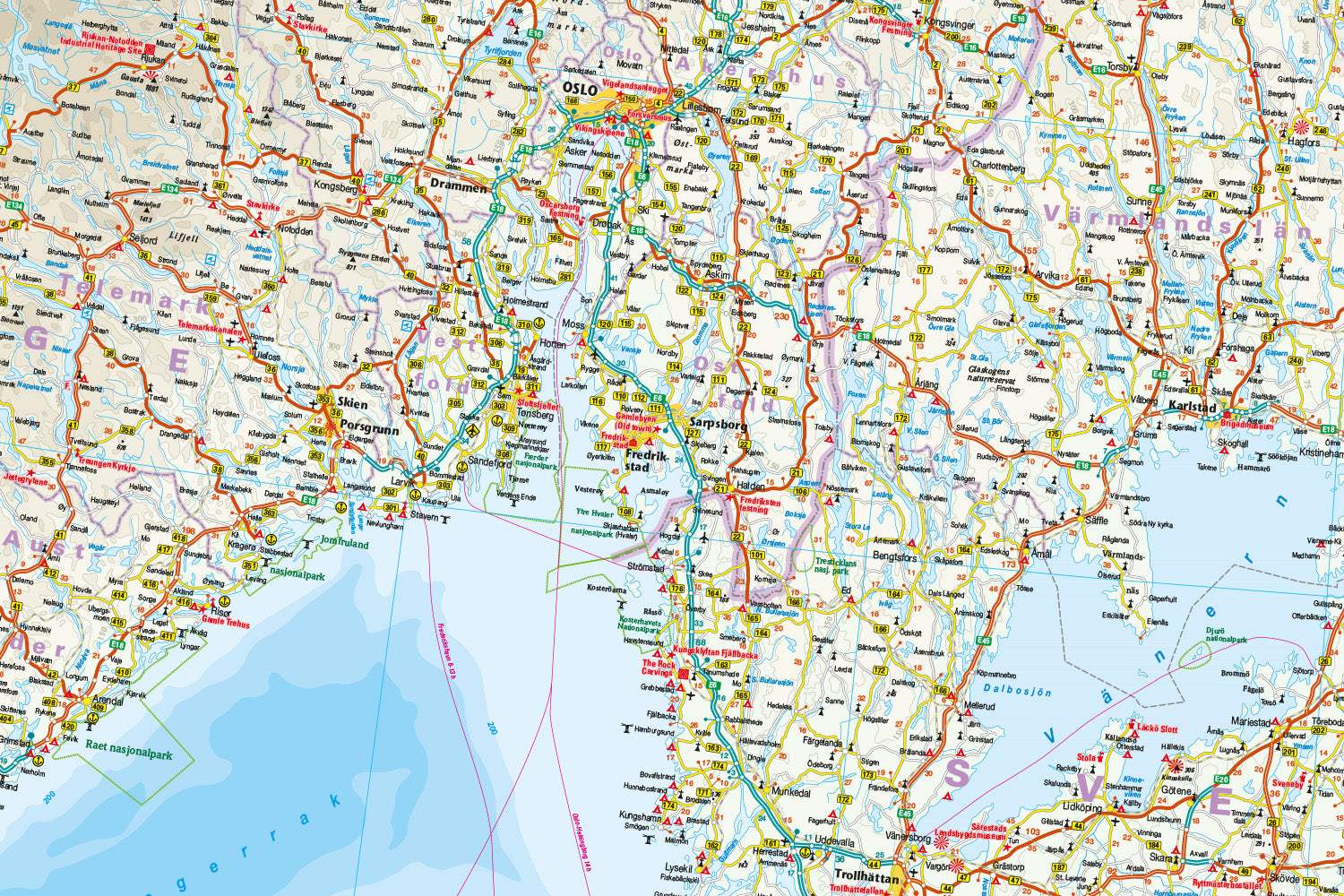 Highly tear-resistant and 100% waterproof map Southern Sweden and Norway Road Map from the world mapping project series. This map, together with the map Finland and Northern Scandinavia, covers the entire area of Norway, Sweden and Finland.