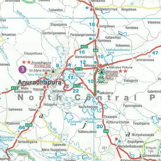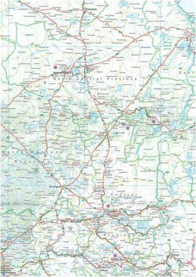 This detailed, colourful map contains tourist information, scenic routes and national parks to help you plan, get around and optimize your stay in Sri Lanka. The legend is in English, German, French and Sri Lankan.