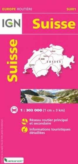From IGN's Decouverte du Monde (Discover the World) series, this Switzerland map at 1:303 000 features excellent detail. Highways, principal roads and many minor roads are clearly marked out with intermediate road distances shown on most of them. Places of interest or significance are indicated on the map including railways, airports, ports, national parks, petrol stations and more.