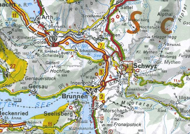 Part of the orange regional series from Michelin, this Switzerland South East map shows this part of Switzerland in excellent detail. Primary & secondary road networks are clearly marked out with indications of the number of lanes, intermediate distances and various possible road obstacles or things you should know including steep hills, height limits, toll barriers, prohibited roads and roads subject to restrictions.