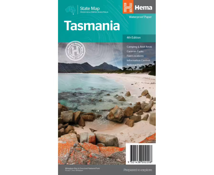 The fourth edition of Hema’s Tasmania State Map features Hema’s distinctive and informative maps fully, all of which have been field checked by Hema’s Map Patrol to ensure the best possible accuracy with the latest mapping data.