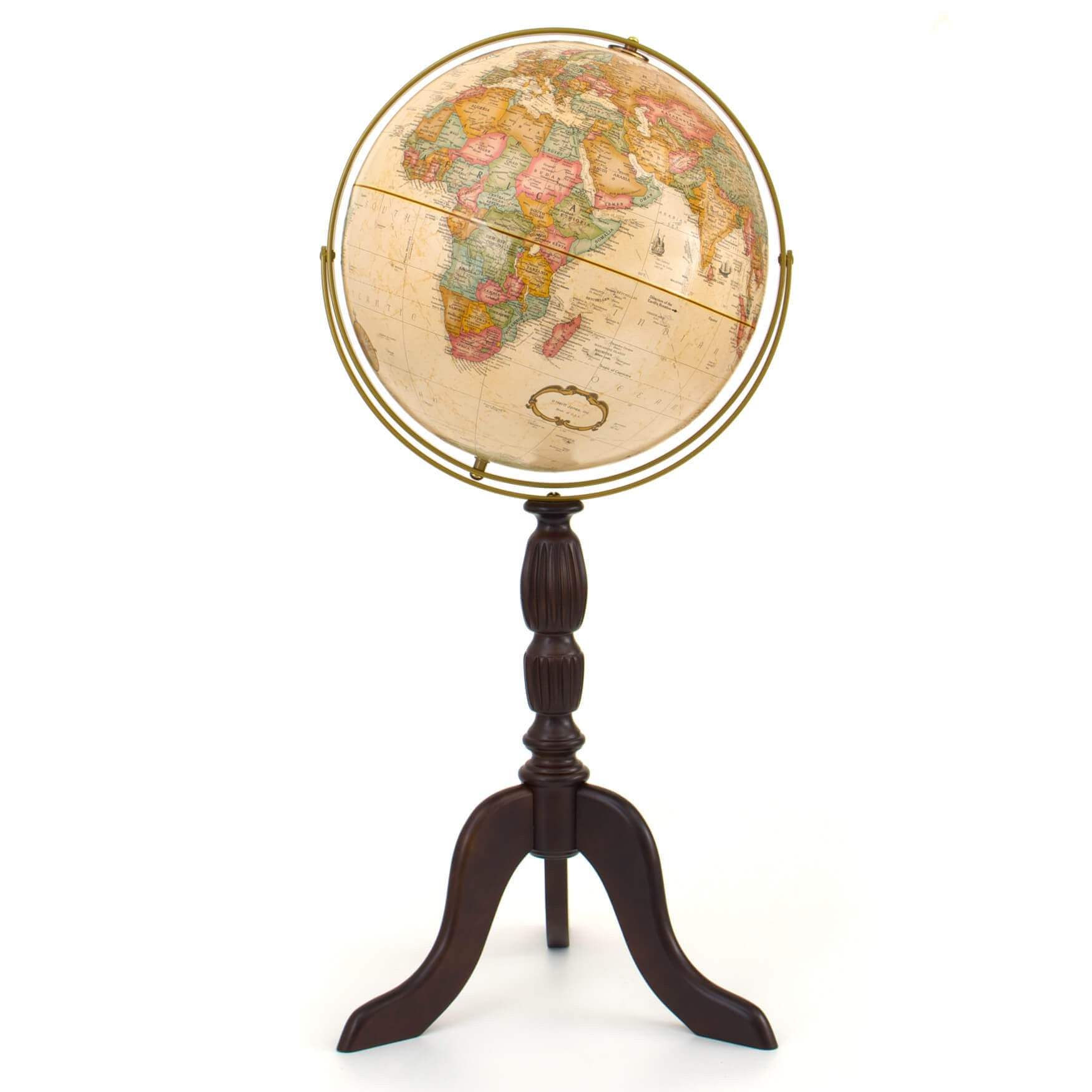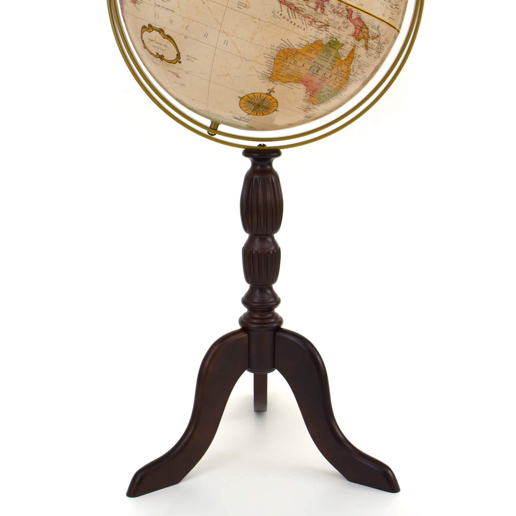 With antique oceans, deep walnut stained hardwood, and contrasting landmasses, the Cambridge floor globe possesses a real vintage feel.