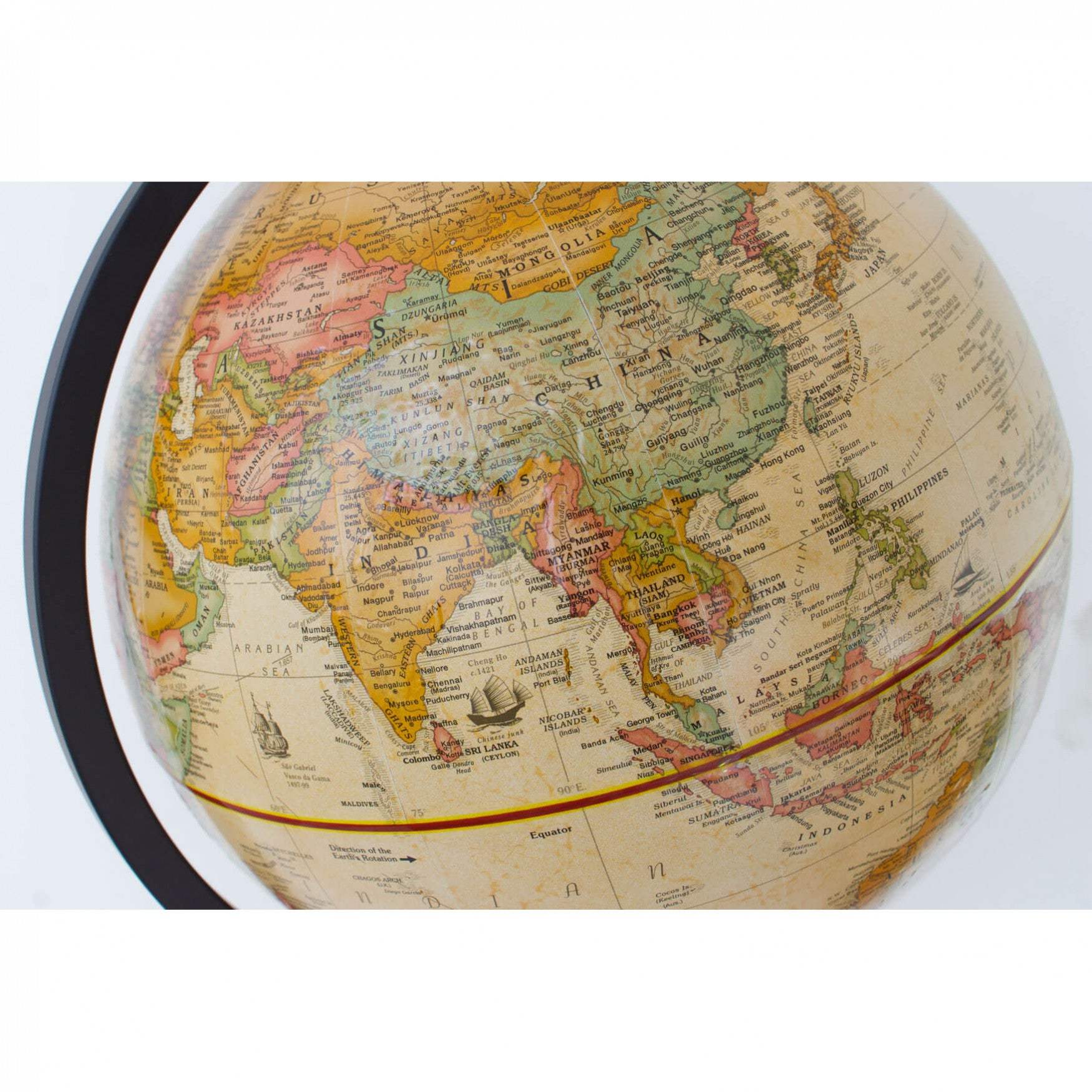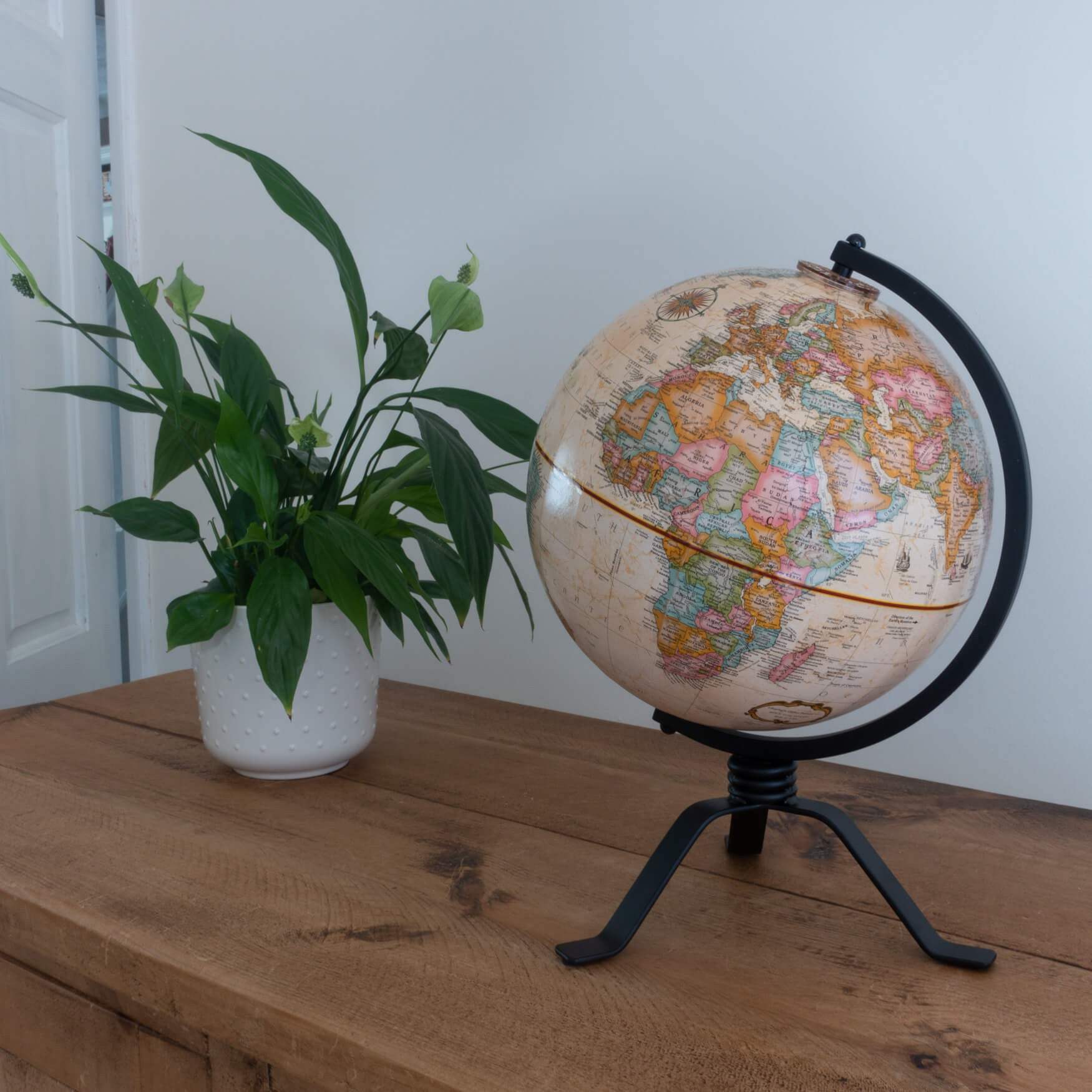 The MacKie 23 cm (9”) desk top globe has been designed to appeal to all globe lovers and be a source of information and delight in any room or small office setting. The globe ball is made using traditional techniques with a 100% recycled fibreboard sphere and a paper map for maximum detail. The cartography, by Kevin M Dzurny, is up to date and includes over 4000 place names and other pieces of information.
