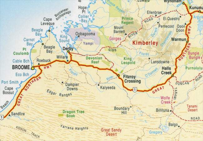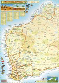 This glossy, double sided A4 card has Western Australia printed on one side at 1:7 100 000, the other sided has all of Australia at 1:20 000 000.